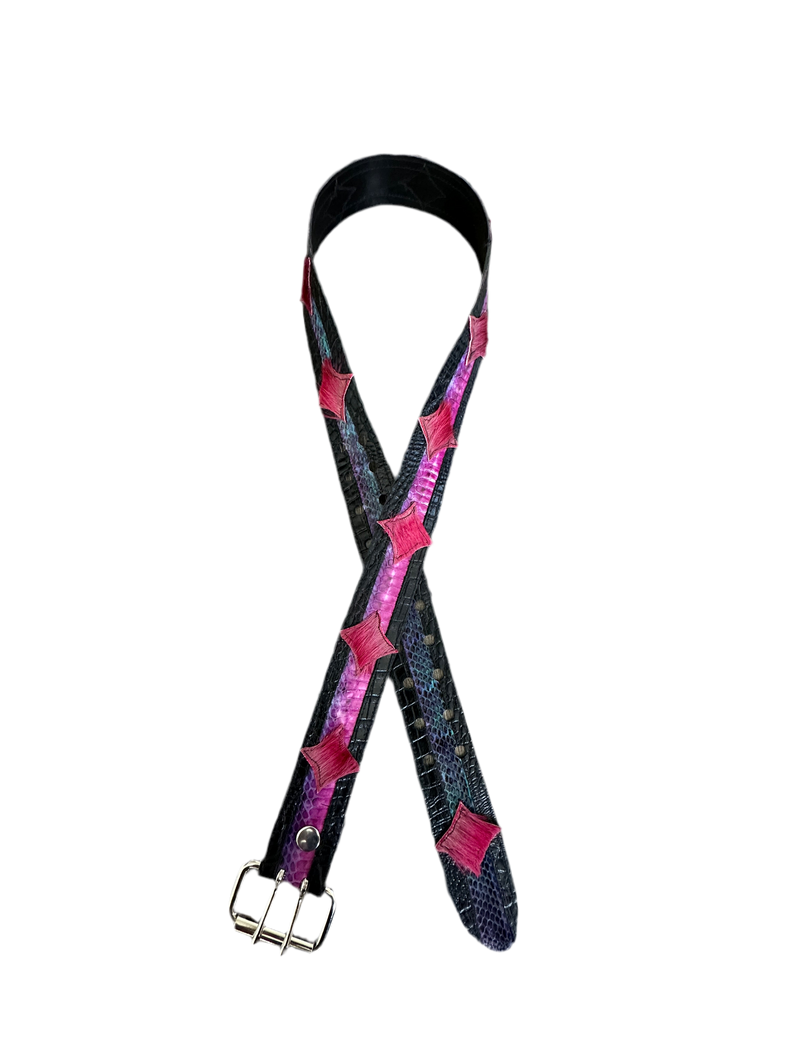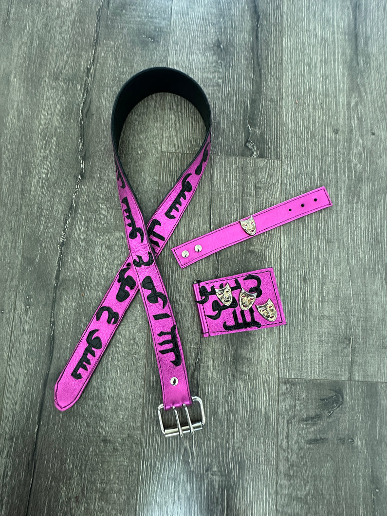 Pink reflective lamb leather with matching lamb leather belt